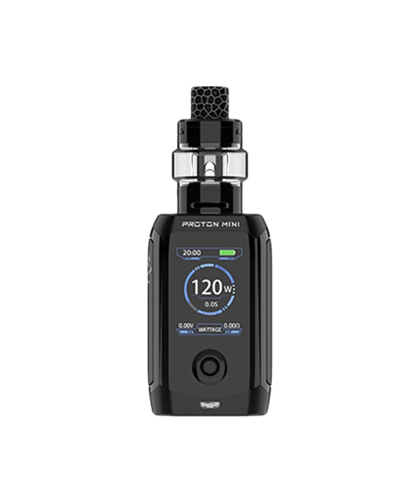 Power users will love the advanced functions including temperature control, custom TCR, custom Wattage Curve, Bypass Mode, 3 Coil Memory Slots to save your favorite settings, and more. The device houses an internal 3400mAh built-in battery that lasts longer and can be charged with a fast 2A quick charge. The Proton Mini also packs up to an impressive 120W of power.